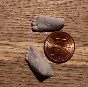 Manchmal sind es die ganz kleinen Dinge, die die größte Bedeutung haben. Ein kleines Sternenmädchen von 15 cm und 62 g wurde geboren – und unser Team hat etwas Wunderbares geschafft: winzige 3D-Fußabdrücke, eine der kleinsten, die wir je gestalten durften.